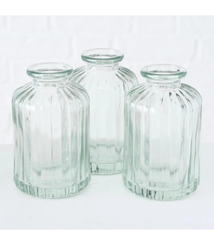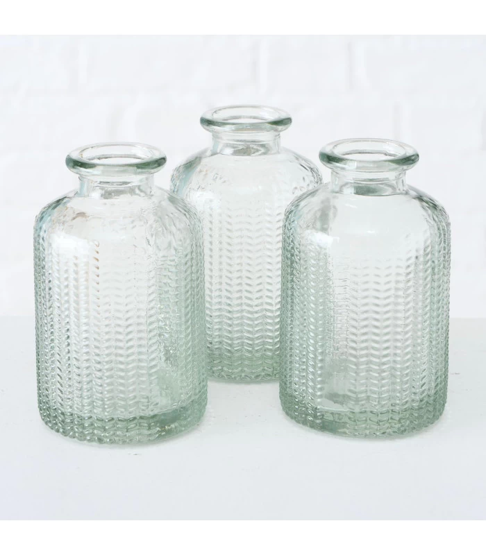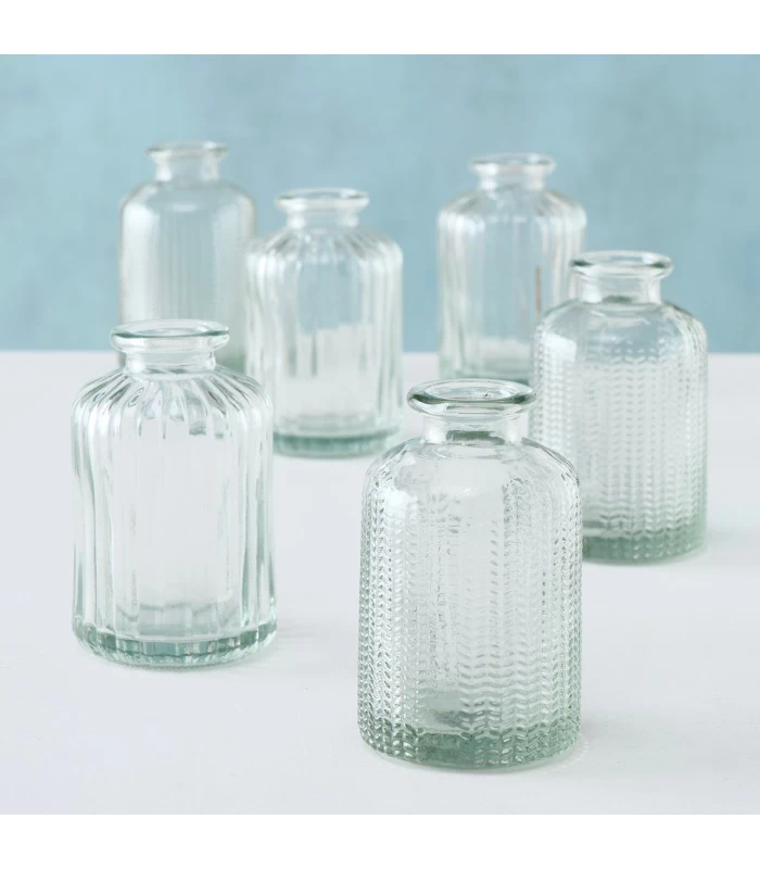 Set composé de 6 petits soliflores en verre à motifs embossés.