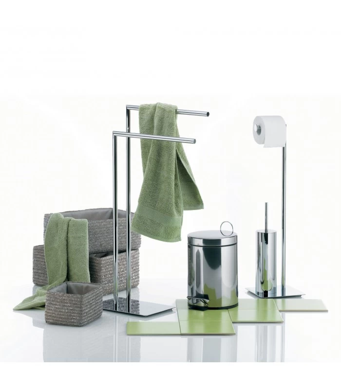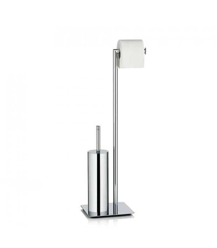 Ensemble dérouleur papier toilette et brosse WC. Cet ensemble pour WC se caractérise par la qualité des matériaux et le style sobre que l’ensemble offre. La plaque ovale de base fine en acier brillant supporte le départ du porte-papier WC offrant un style élancé et épuré. Le conteneur de la brosse de toilettes est en acier inoxydable de haute qualité qui définit une touche d’élégance et de sobriété supplémentaire. La brosse de toilette est de haute qualité en acier inoxydable et tête de brosse de couleur noire ultra-efficace.