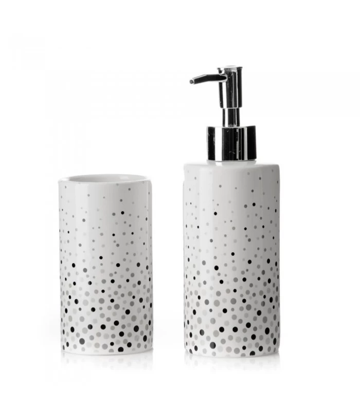 Set pour Salle de bain comprenant 1 distributeur de savon + un porte-brosse à dents/gobelet.