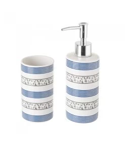 Set pour Salle de bain comprenant 1 distributeur de savon + un porte-brosse à dents/gobelet.