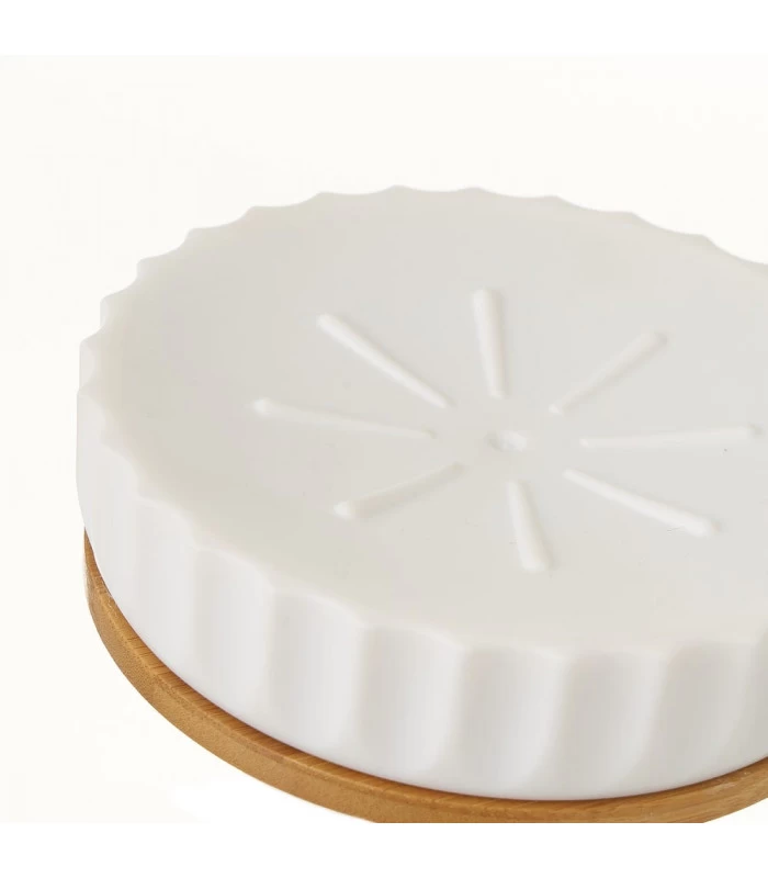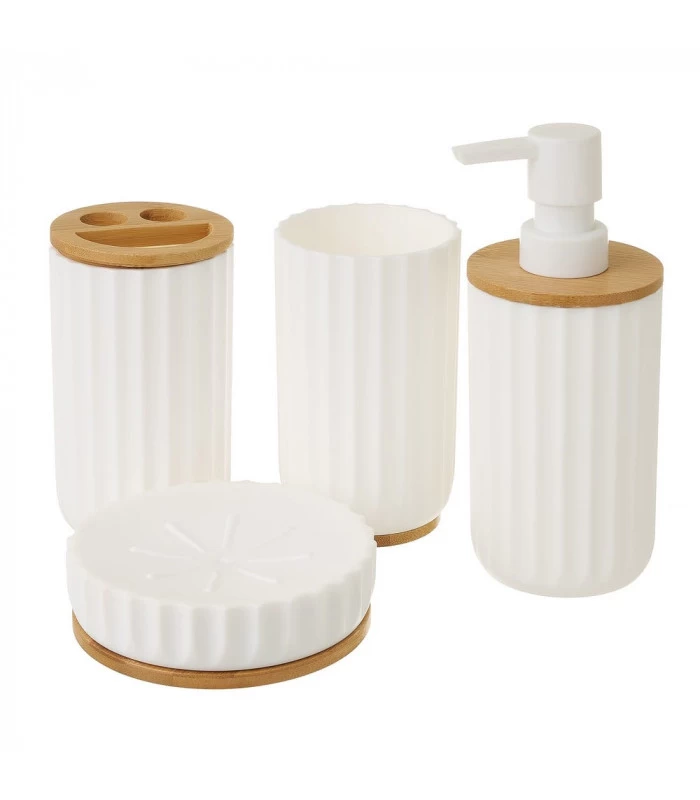 Set Salle De Bain Plastique Blanc Et Bambou – 4 Pièces