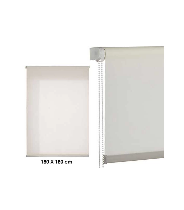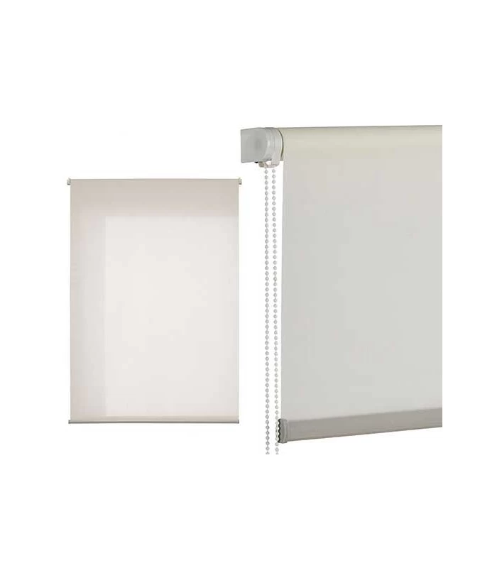 Store enrouleur tamisant en tissu blanc crème laissant passer la lumière mais protègeant votre intimité.