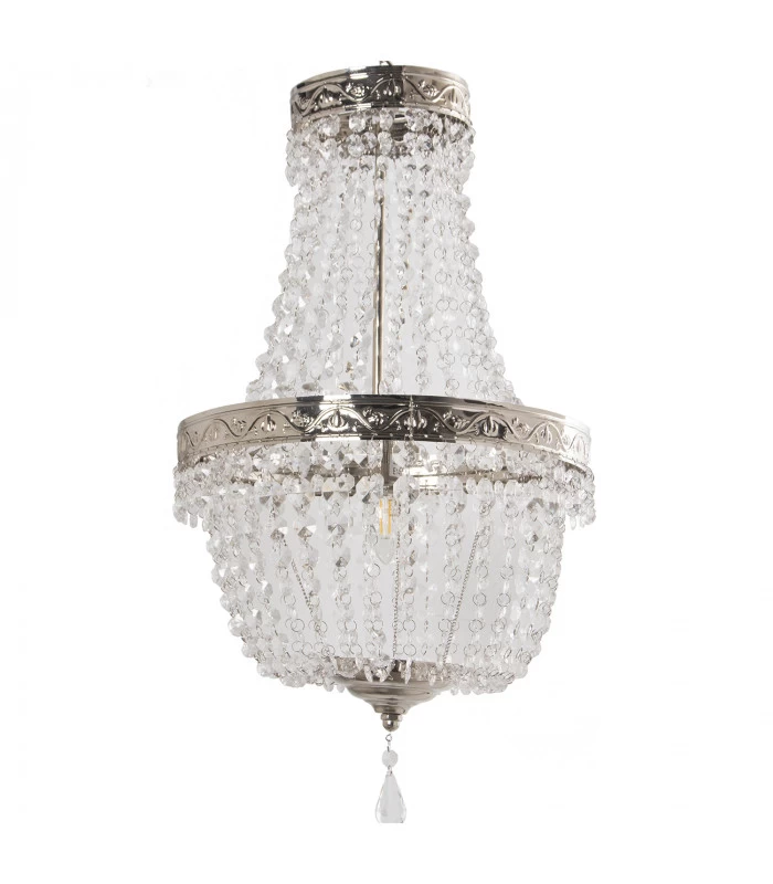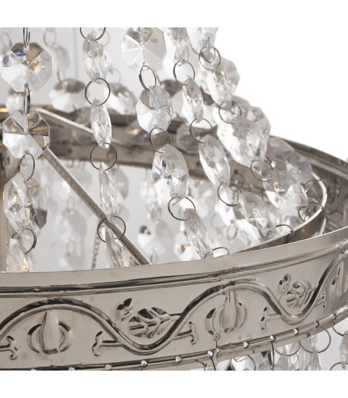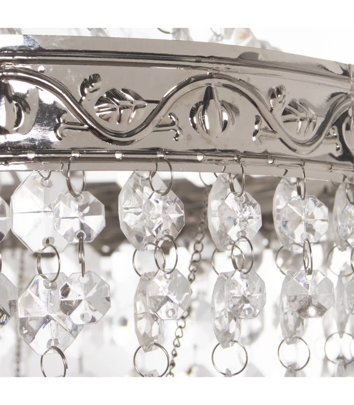 Suspension Baroque à Pampilles Acryliques Et Métal Argenté – 35x69cm