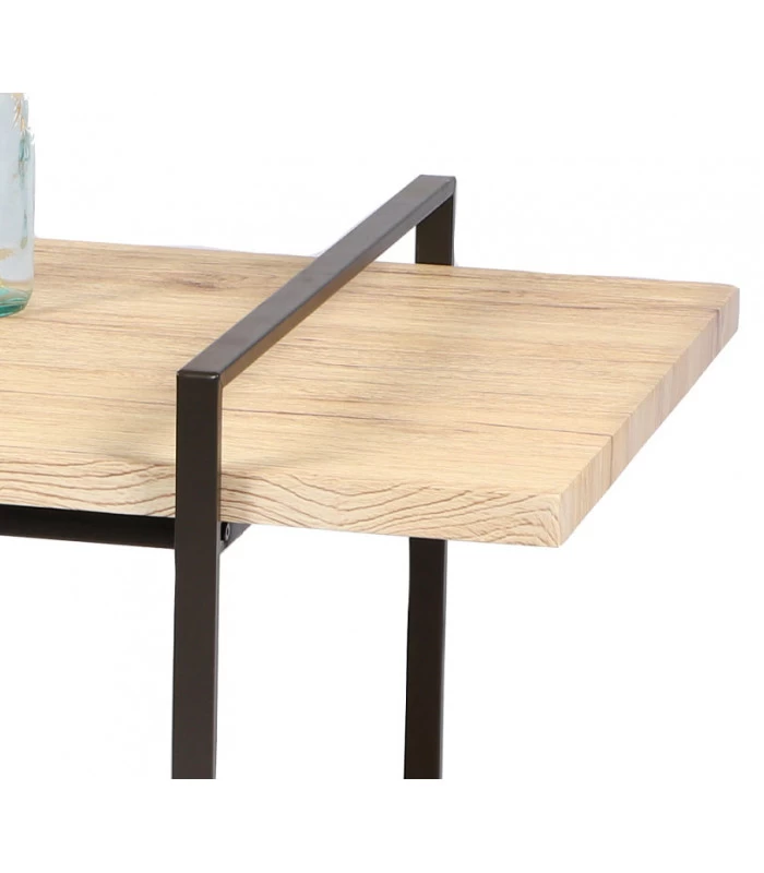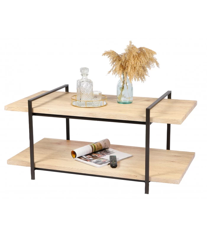 Table basse avec structure en métal noir et 2 plateaux en bois MDF.