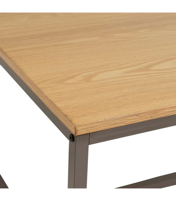 Table basse sobre et élégante en bois couleur naturelle et métal gris. Supporte jusqu’à 30kg.