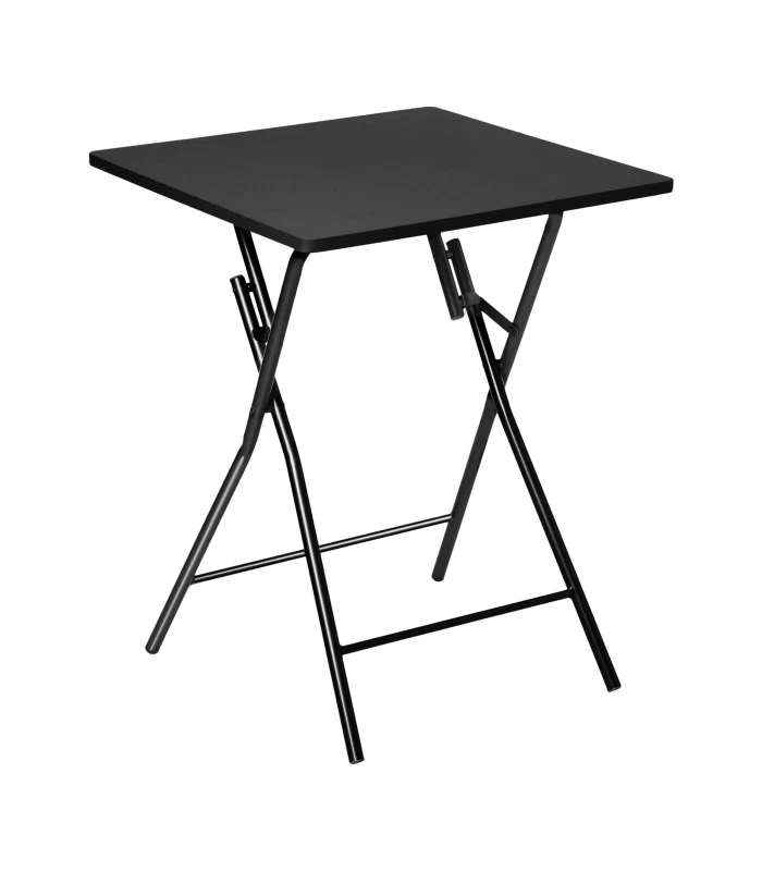 Table d’appoint pliante noire, idéale pour les petits espaces. Cette table se déplie et se range facilement vous permettant de l’installer pour les repas ou pour travailler.