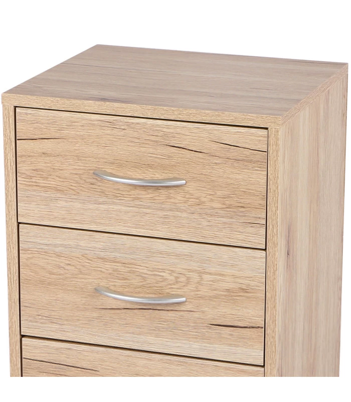 Table de chevet simple comprenant 3 tiroirs. Table de chevet en MDF. Se nettoie avec un chiffon humide.
