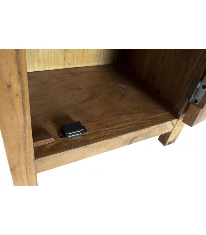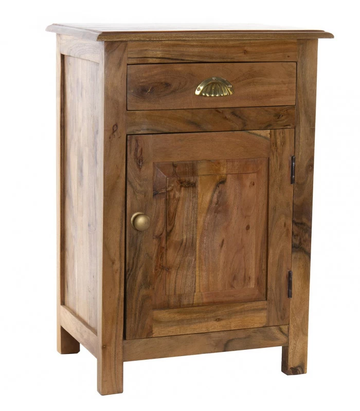 Table de chevet en bois massif d’acacia comprenant 1 tiroir et 1 placard.