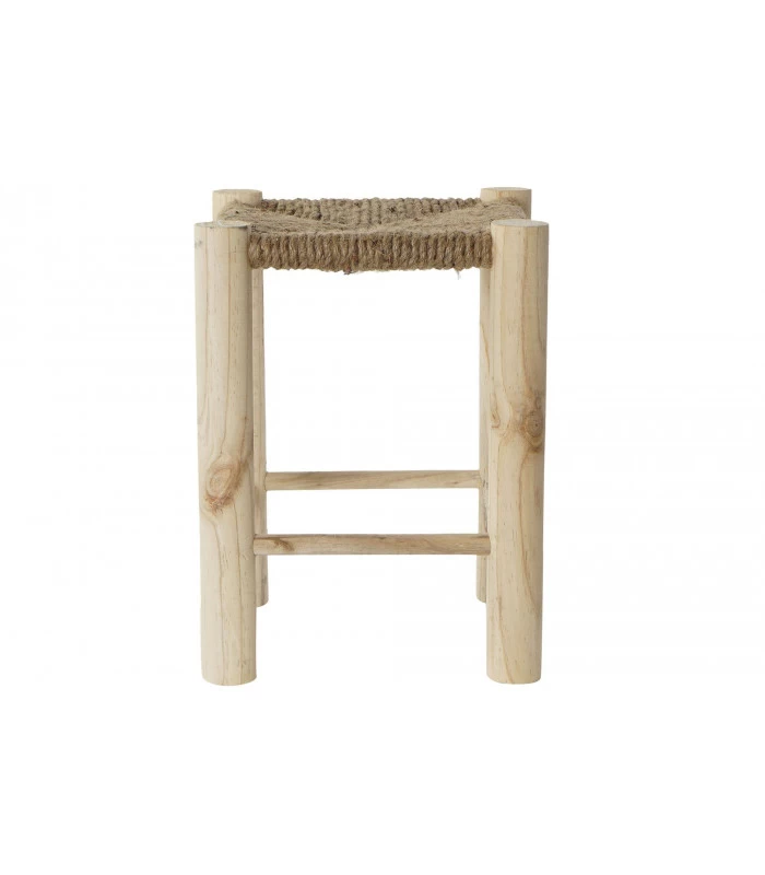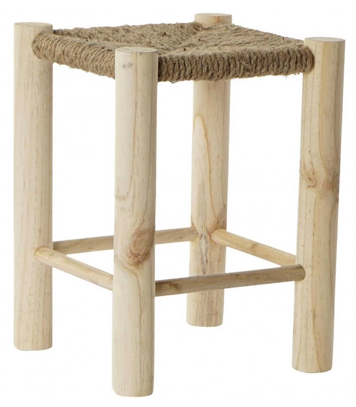 Tabouret carré en bois et corde. Tabouret classique qui convient pour toutes les pièces comme assise d’appoint ou repose-pieds.