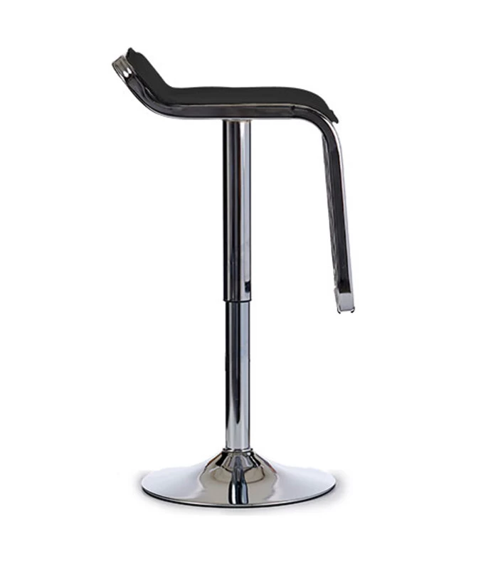 Tabouret de bar en métal chrom et assise en similicuir noir. Hauteur ajustable.