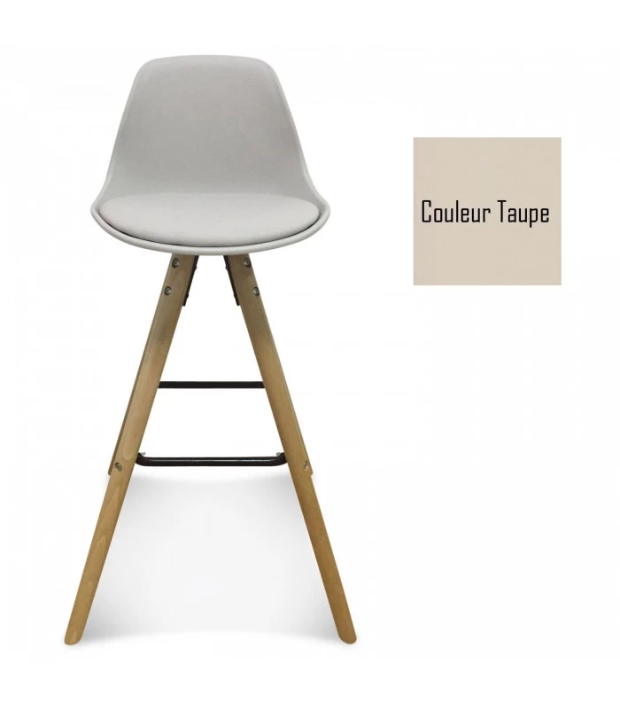 Tabouret De Bar En Hêtre Et Assise Similicuir Taupe