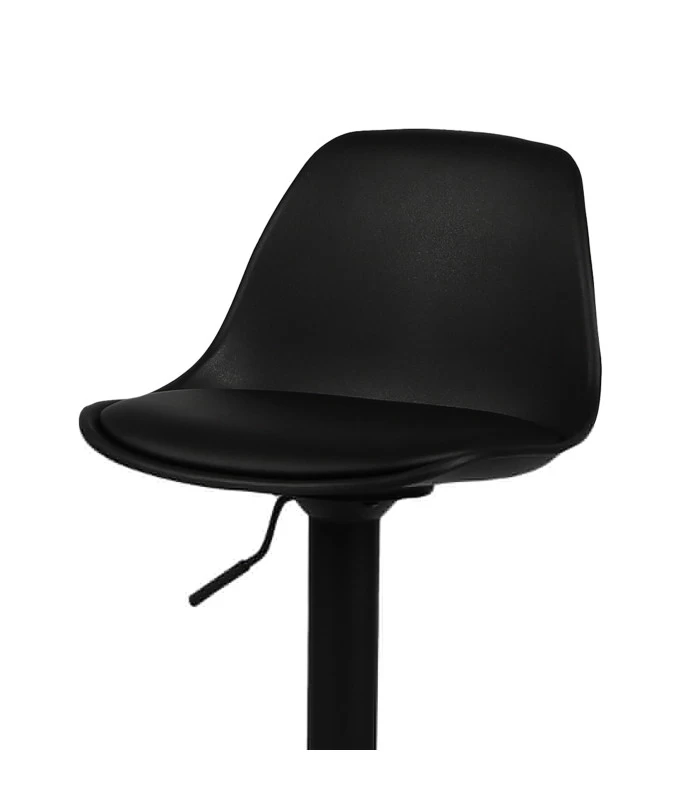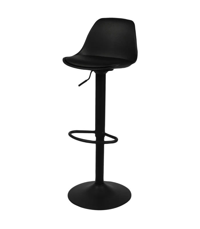 Tabouret de bar en métal noir et assise en similicuir noir. Hauteur ajustable.