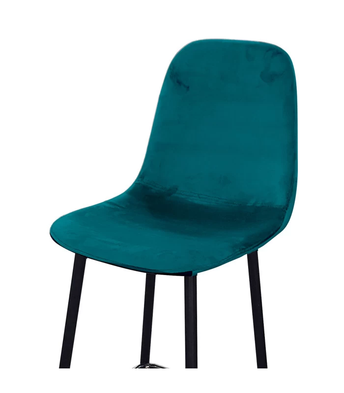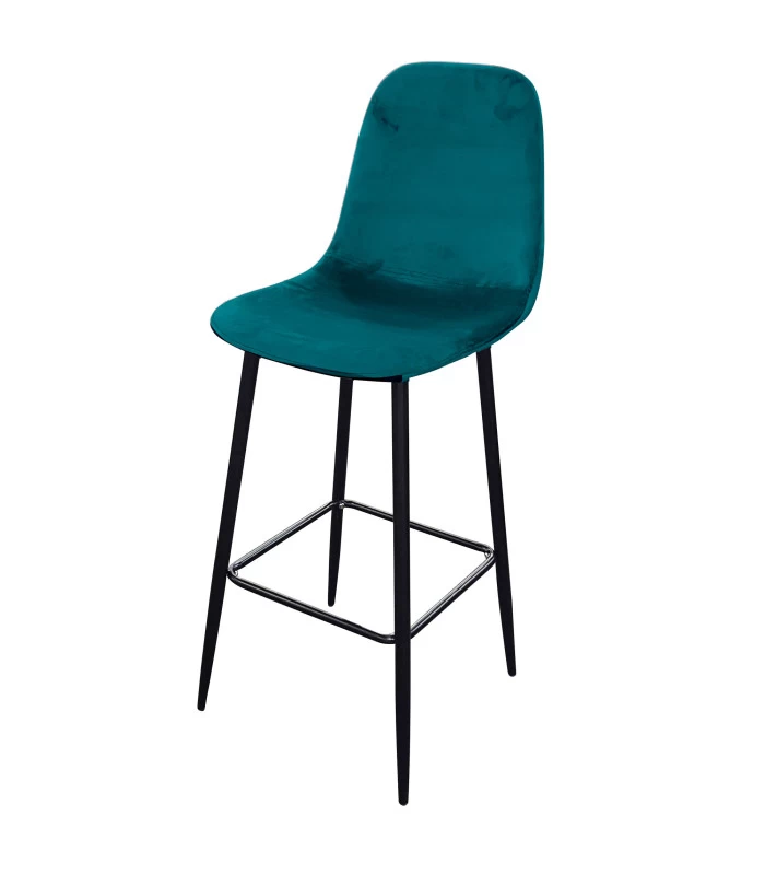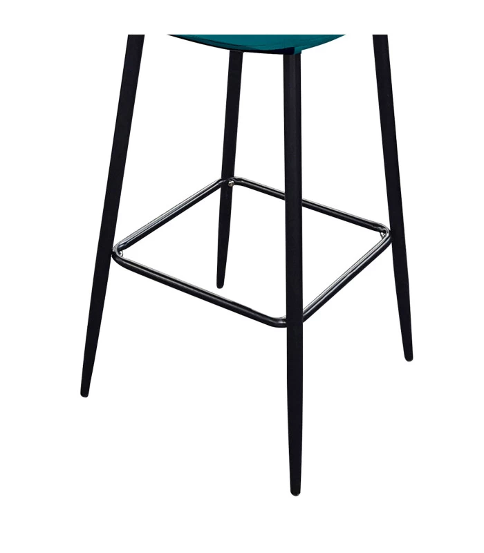Tabouret de bar en métal noir et assise en tissu velours bleu canard.