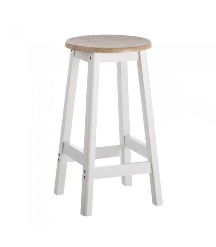 Tabouret en bois MDF blanc et assise couleur bois. Idéale comme tabouret de cuisine.