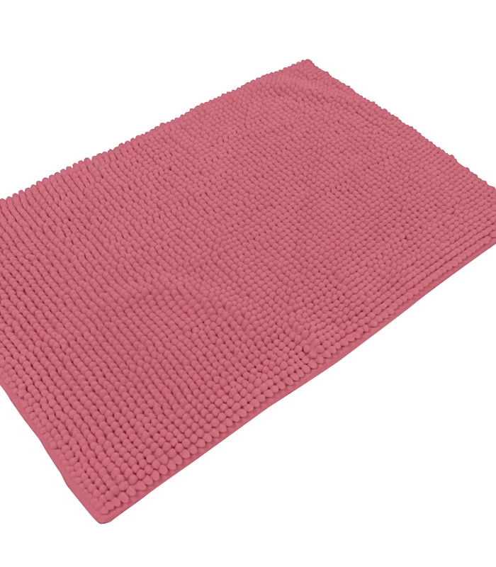 Grand tapis de bain rectangulaire chenille rose.