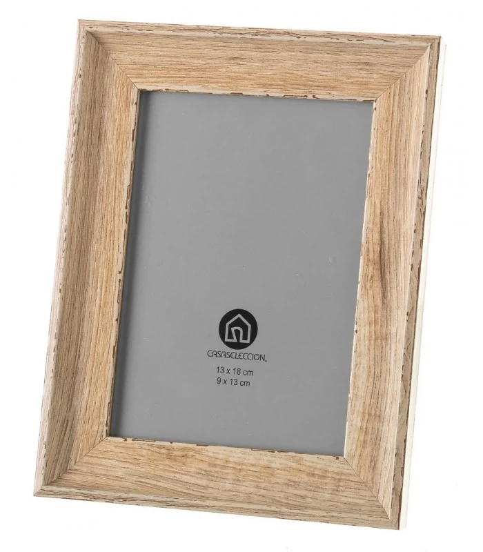 Cadre photo à poser en polystyrène peint couleur bois et beige pour photo 13x18cm.