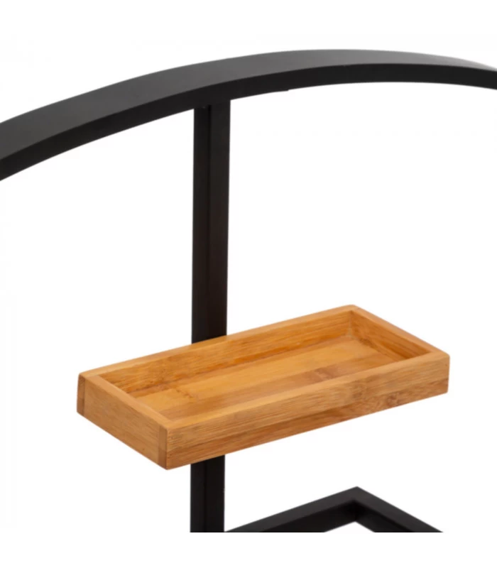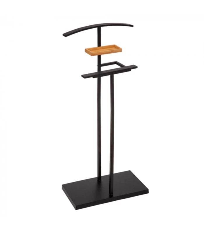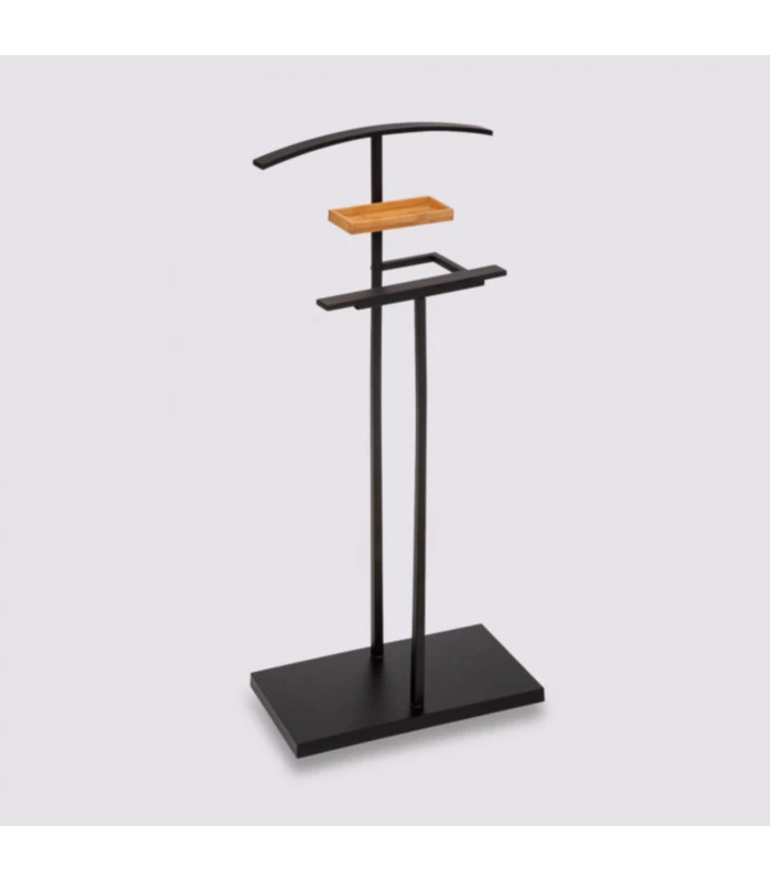 Valet de nuit classique en métal noir et bambou avec vide-poche.